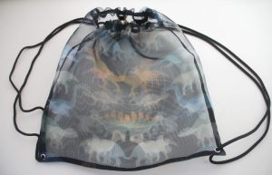 メッシュにかわいい恐竜がプリントされています。メッシュのプリントは他にはありません。